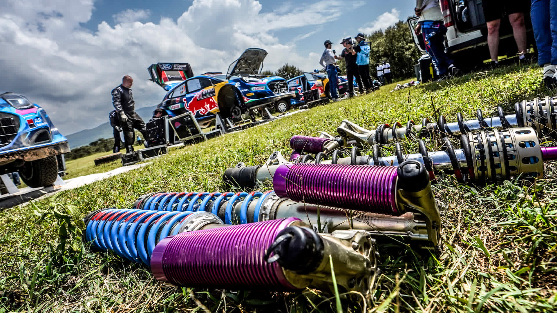 Rally car dampers are adjustable to provide different characteristics. At the simplest level they can be soft or hard, but other factors like rebound or ride-height can also be altered. Drivers are able to adjust damper settings between stages. The degree of change is usually measured in ‘clicks’ of the adjuster wheel.