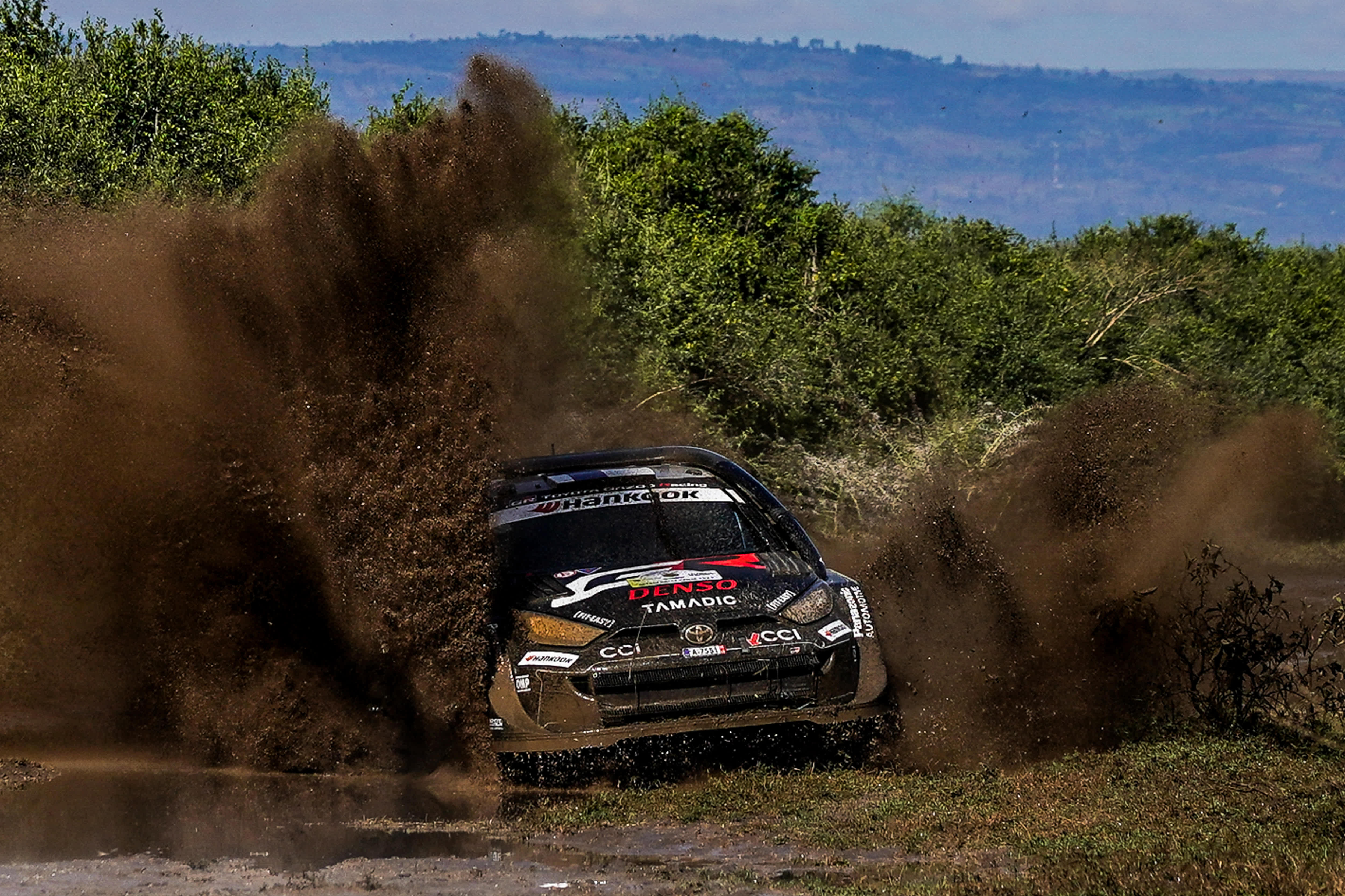 Rovanperä hit back on Elmenteita – but not in the way he would have hoped. A front-right deflation in the final five kilometres saw him haemorrhage 21.1sec to the Welshman, and things went from bad to worse on the following stage at Soysambu. There, a front-left puncture cost the Finn a further 55.5sec, leaving him trailing Evans by 1min 32.5sec at the midday halt.
