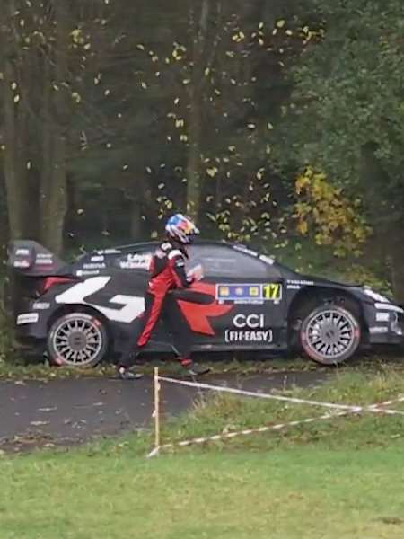 Running second overall behind Toyota Gazoo Racing team-mate Kalle Rovanperä, Ogier understeered wide in a leaf-covered high-speed section, his GR Yaris Rally1 striking a tree and sustaining major front-left damage. The impact, measured at around 10G, ripped the wheel from the car. Both Ogier and co-driver Vincent Landais were unharmed.