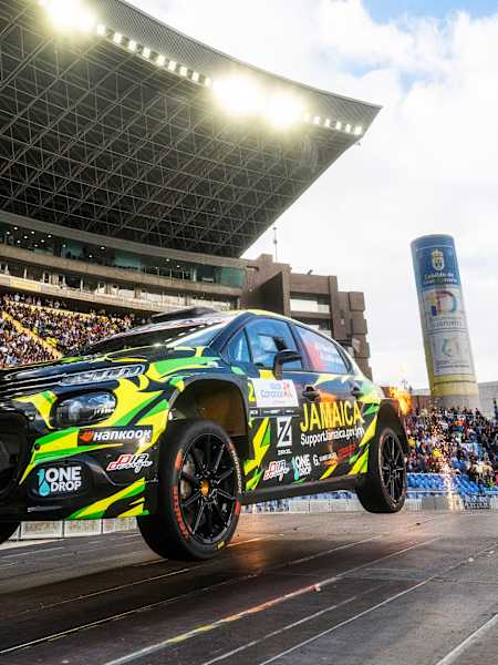 On Saturday night at Gran Canaria Stadium, the service park was humming with activity as fans crowded around the service bays of the Rally1 crews. But another service area was attracting just as much attention – that of the affable Marchino, the Italian-American quickly building an army of fans, helped in no small part by his striking Jamaican livery.